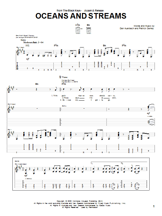 Download or print The Black Keys Oceans And Streams sheet music, chords and digital score arranged for Guitar Tab. This Pop score includes 5 page(s).