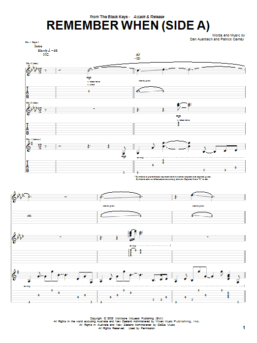 Download or print The Black Keys Remember When (Side A) sheet music, chords and digital score arranged for Guitar Tab. This Pop score includes 10 page(s).