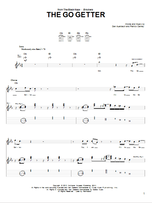 Download or print The Black Keys The Go Getter sheet music, chords and digital score arranged for Guitar Tab. This Blues score includes 5 page(s).