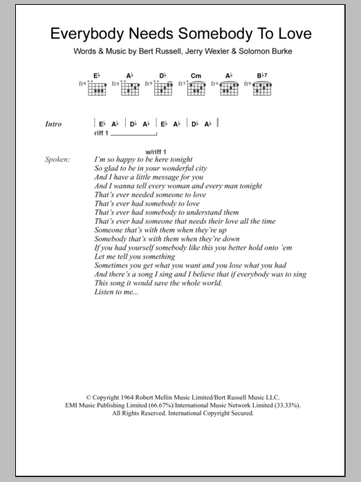 Quick facts Everybody Needs Somebody To Love about digital sheet music