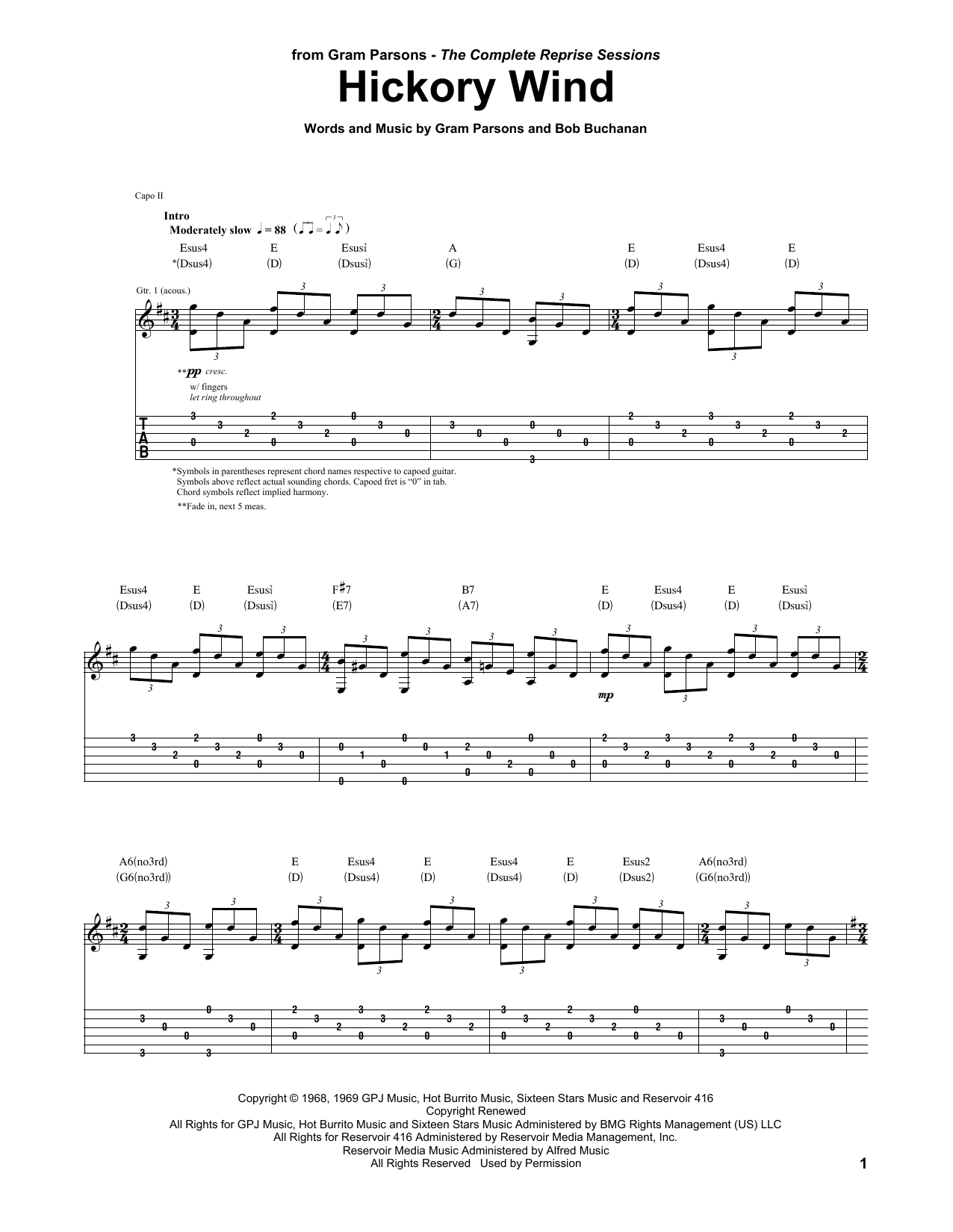 Download or print The Byrds Hickory Wind sheet music, chords and digital score arranged for Guitar Tab. This Country score includes 8 page(s).