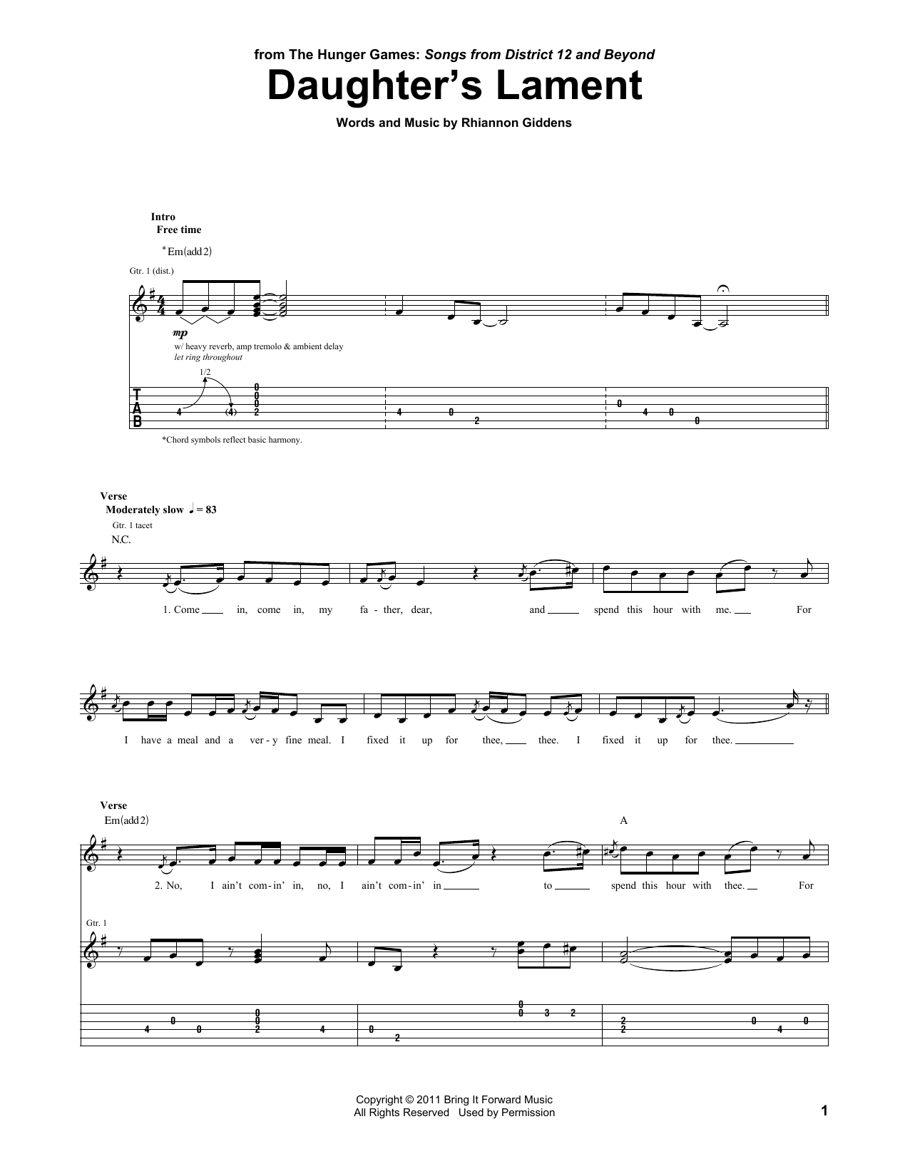 Download or print The Carolina Chocolate Drops Daughter's Lament sheet music, chords and digital score arranged for Piano, Vocal & Guitar Chords (Right-Hand Melody). This Alternative score includes 1 page(s).