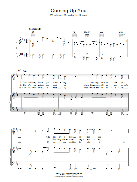 Download or print The Cars Coming Up You sheet music, chords and digital score arranged for Piano, Vocal & Guitar Chords. This Pop score includes 5 page(s).