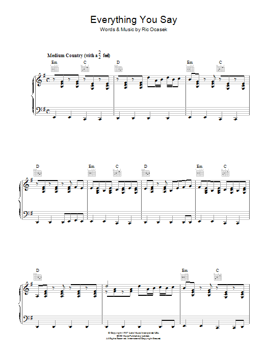 Download or print The Cars Everything You Say sheet music, chords and digital score arranged for Piano, Vocal & Guitar Chords. This Pop score includes 9 page(s).