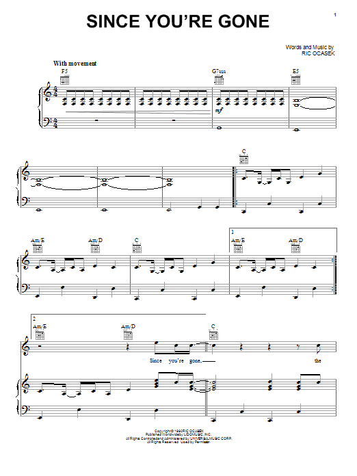 Download or print The Cars Since You're Gone sheet music, chords and digital score arranged for Piano, Vocal & Guitar Chords (Right-Hand Melody). This Pop score includes 7 page(s).