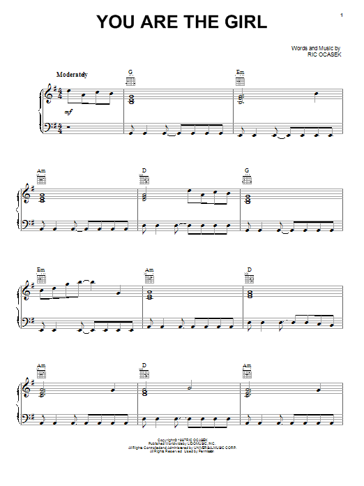 Quick facts You Are The Girl about digital sheet music