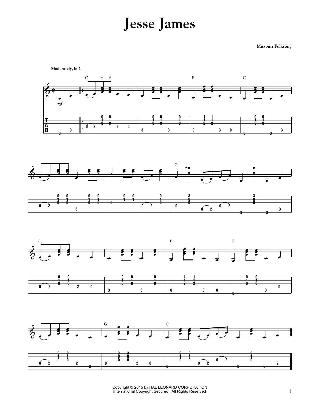 Download or print Carter Style Guitar Jesse James sheet music, chords and digital score arranged for Solo Guitar. This Folk score includes 2 page(s).