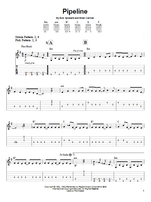 Download or print The Chantays Pipeline sheet music, chords and digital score arranged for Piano Solo. This Oldies score includes 3 page(s).