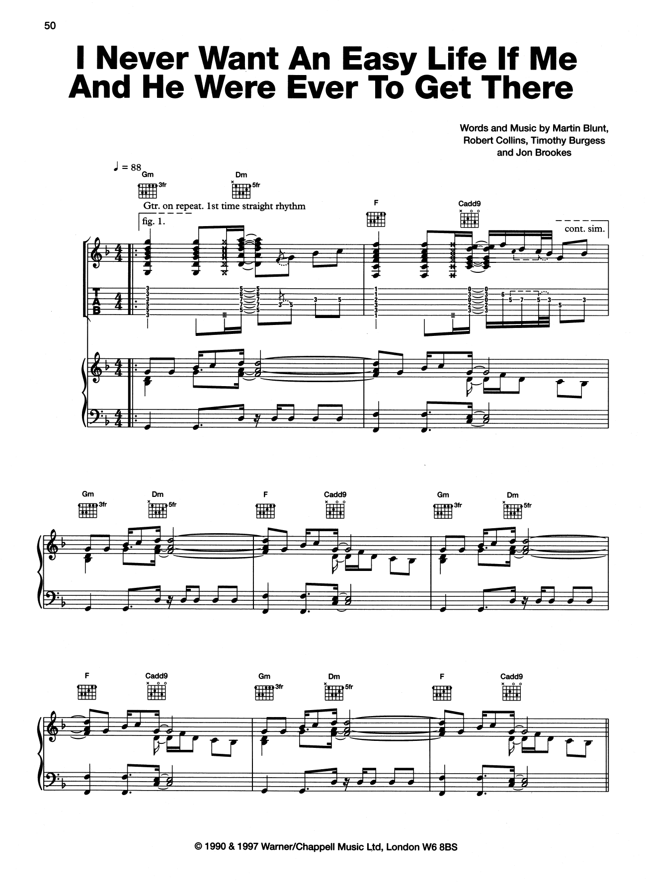 Download or print The Charlatans I Never Want An Easy Life If Me And He Were Ever To Get There sheet music, chords and digital score arranged for Piano, Vocal & Guitar Chords (Right-Hand Melody). This Pop score includes 6 page(s).