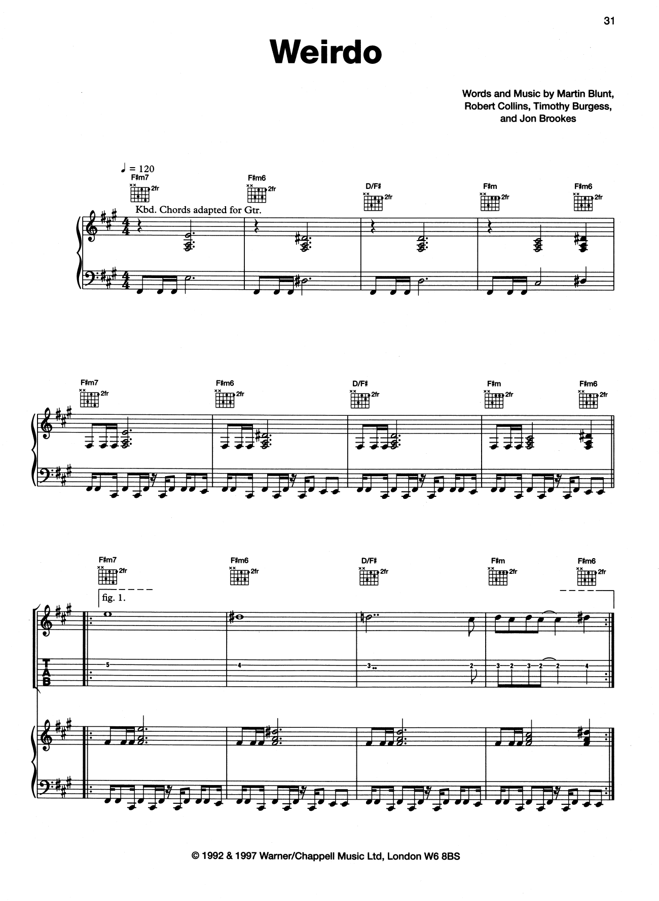 Download or print The Charlatans Weirdo sheet music, chords and digital score arranged for Piano, Vocal & Guitar Chords (Right-Hand Melody). This Pop score includes 6 page(s).