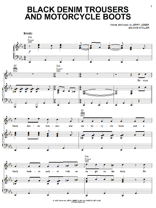Download or print The Cheers Black Denim Trousers And Motorcycle Boots sheet music, chords and digital score arranged for Lead Sheet / Fake Book. This Rock score includes 2 page(s).