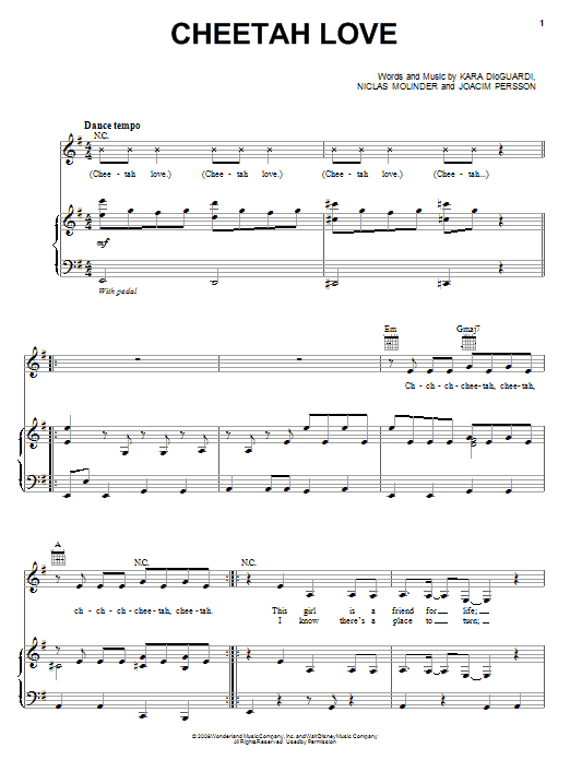 Download or print The Cheetah Girls Cheetah Love sheet music, chords and digital score arranged for Piano, Vocal & Guitar Chords (Right-Hand Melody). This Disney score includes 7 page(s).