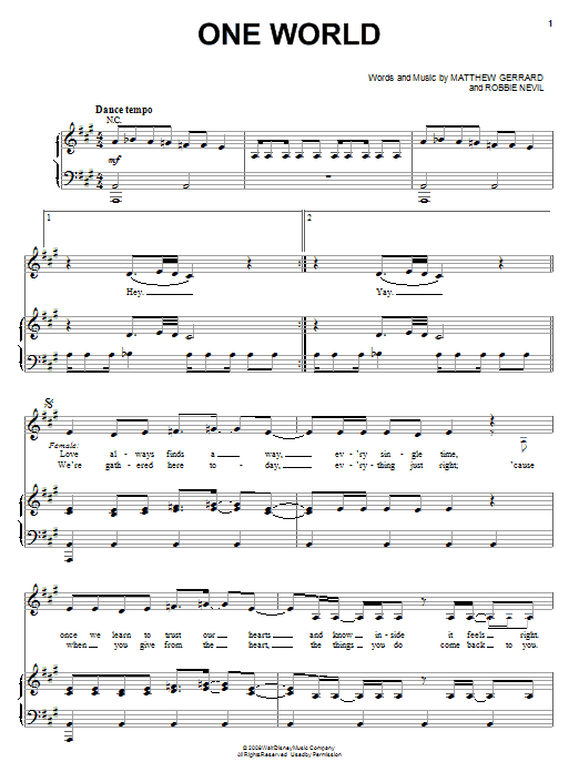 Download or print The Cheetah Girls One World sheet music, chords and digital score arranged for Piano, Vocal & Guitar Chords (Right-Hand Melody). This Disney score includes 7 page(s).
