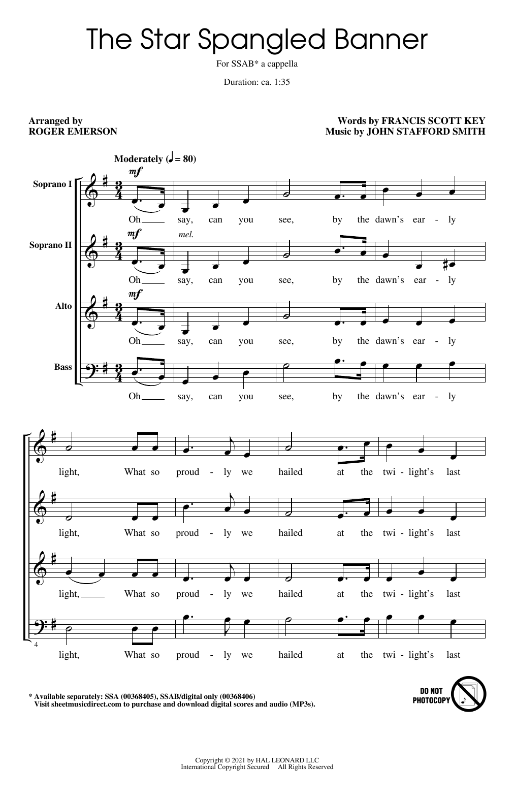 Quick facts Star Spangled Banner (arr. Roger Emerson) about digital sheet music
