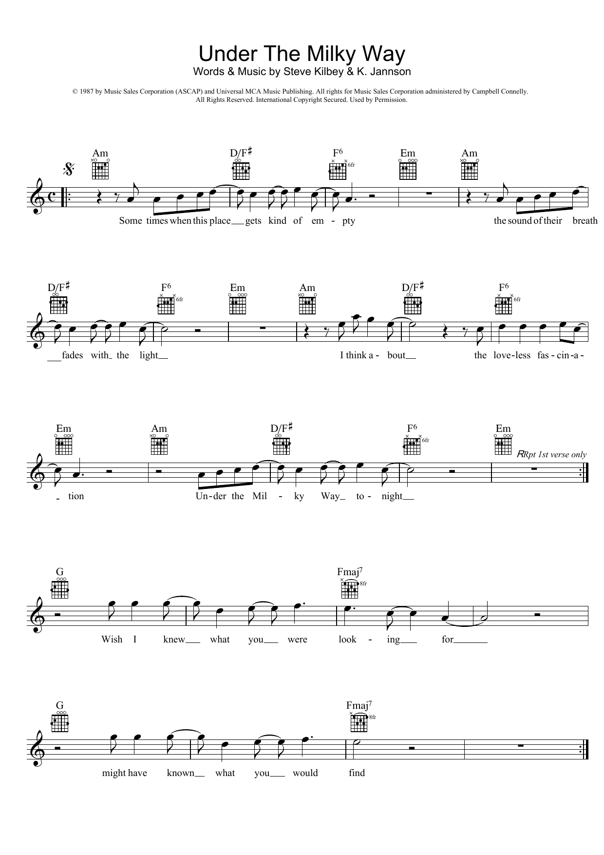 Quick facts Under The Milky Way about digital sheet music