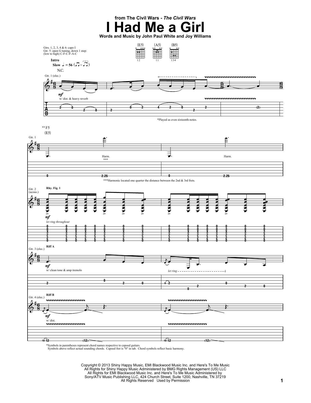 Download or print The Civil Wars I Had Me A Girl sheet music, chords and digital score arranged for Guitar Tab. This Pop score includes 18 page(s).