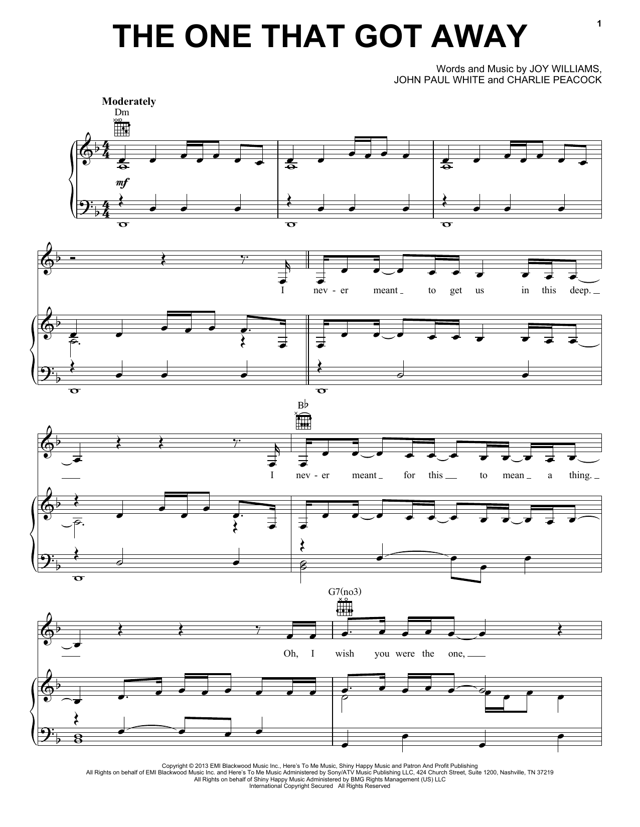 Download or print The Civil Wars The One That Got Away sheet music, chords and digital score arranged for Piano, Vocal & Guitar Chords (Right-Hand Melody). This Folk score includes 6 page(s).