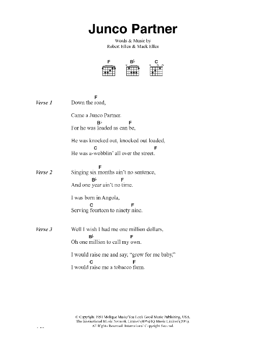 Download or print The Clash Junco Partner sheet music, chords and digital score arranged for Guitar Chords/Lyrics. This Rock score includes 2 page(s).