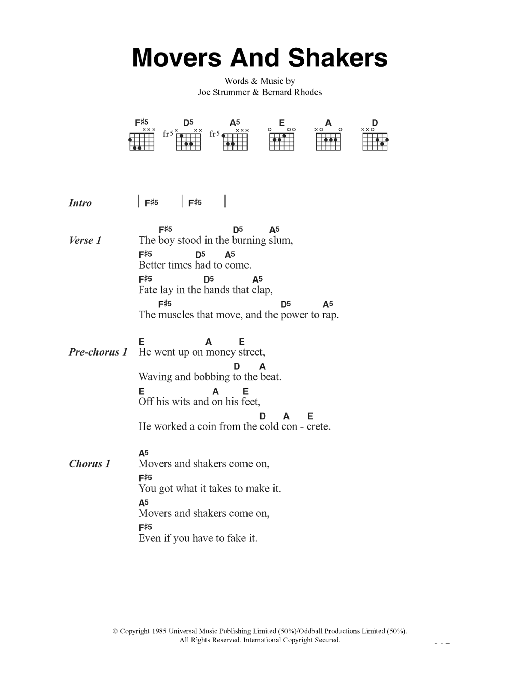 Download or print The Clash Movers And Shakers sheet music, chords and digital score arranged for Guitar Chords/Lyrics. This Rock score includes 3 page(s).