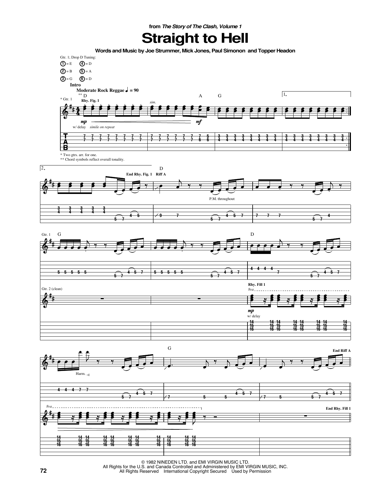 Download or print The Clash Straight To Hell sheet music, chords and digital score arranged for Guitar Chords/Lyrics. This Rock score includes 3 page(s).