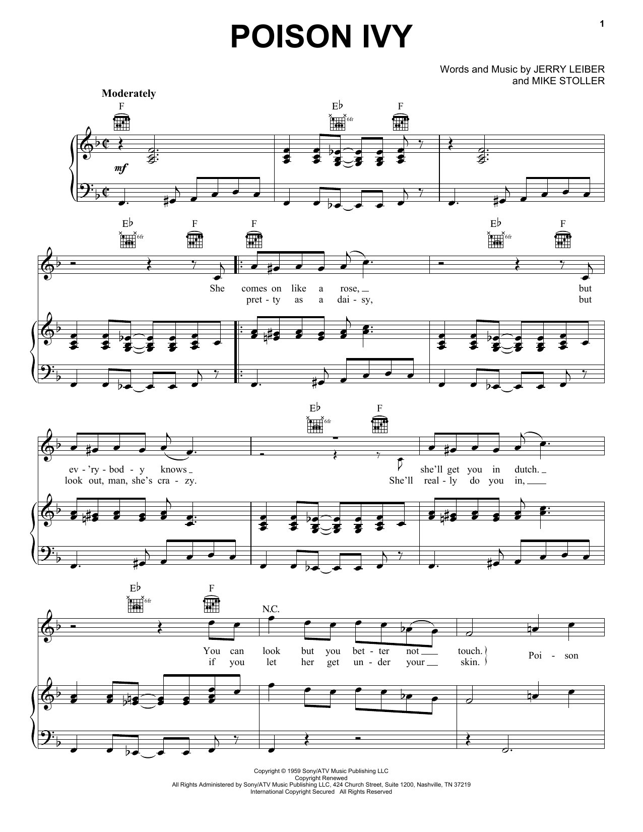Download or print The Coasters Poison Ivy sheet music, chords and digital score arranged for Piano, Vocal & Guitar Chords (Right-Hand Melody). This Pop score includes 4 page(s).