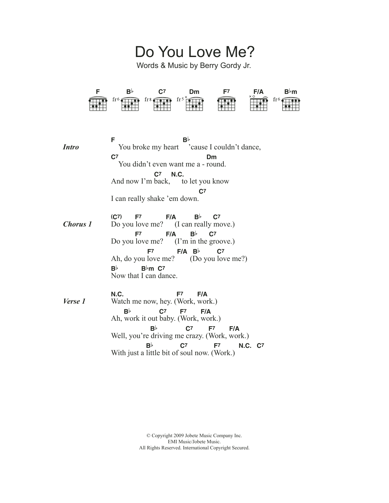 Download or print The Contours Do You Love Me? sheet music, chords and digital score arranged for Guitar Chords/Lyrics. This Rock score includes 3 page(s).