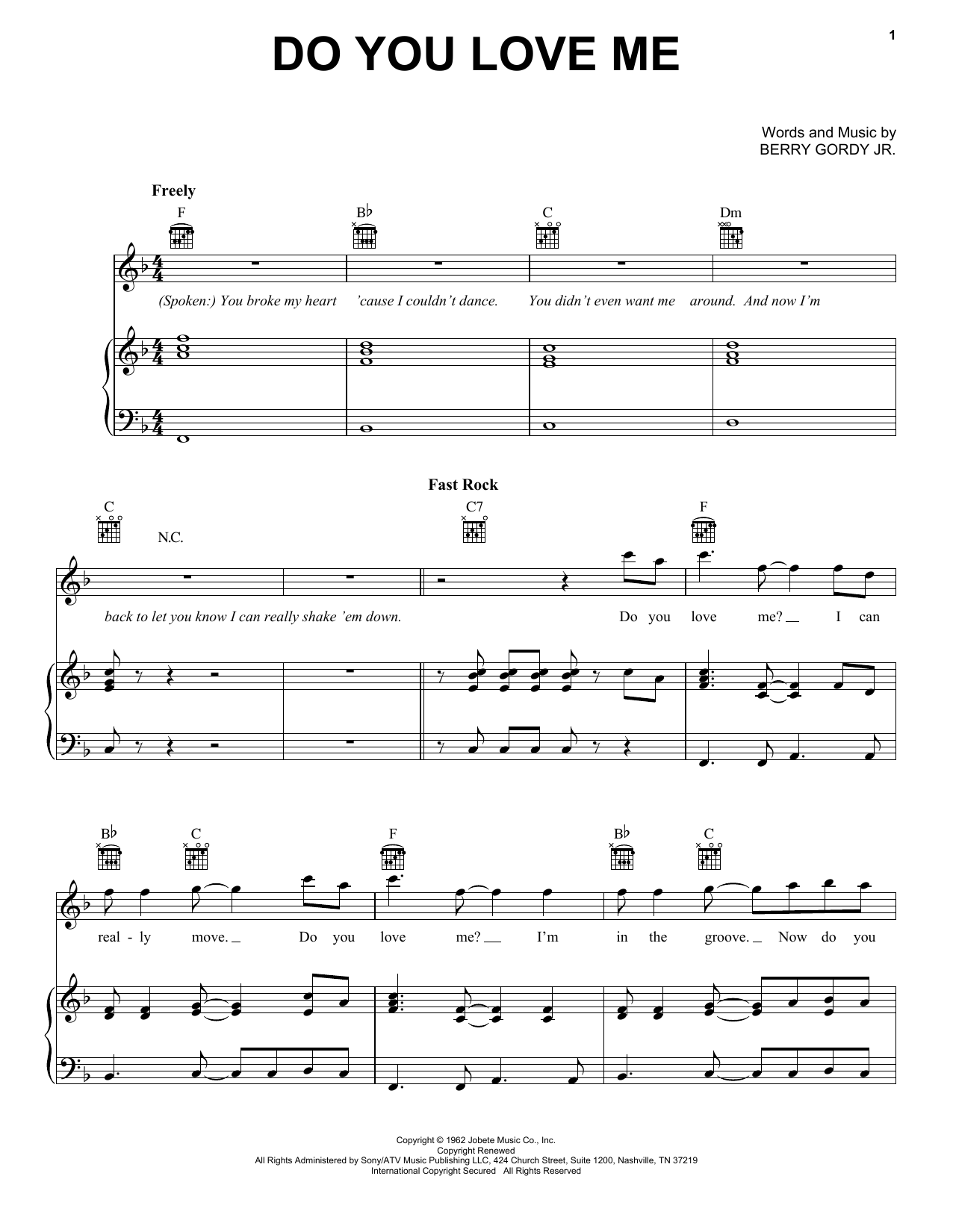 Download or print The Contours Do You Love Me sheet music, chords and digital score arranged for Piano, Vocal & Guitar Chords (Right-Hand Melody). This Film/TV score includes 6 page(s).