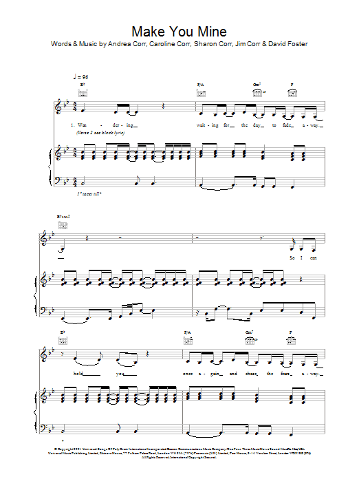 Download or print The Corrs Make You Mine sheet music, chords and digital score arranged for Piano, Vocal & Guitar Chords. This Folk score includes 6 page(s).