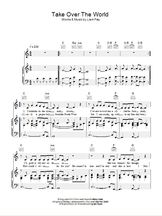 Download or print The Courteeners Take Over The World sheet music, chords and digital score arranged for Guitar Chords/Lyrics. This Rock score includes 2 page(s).