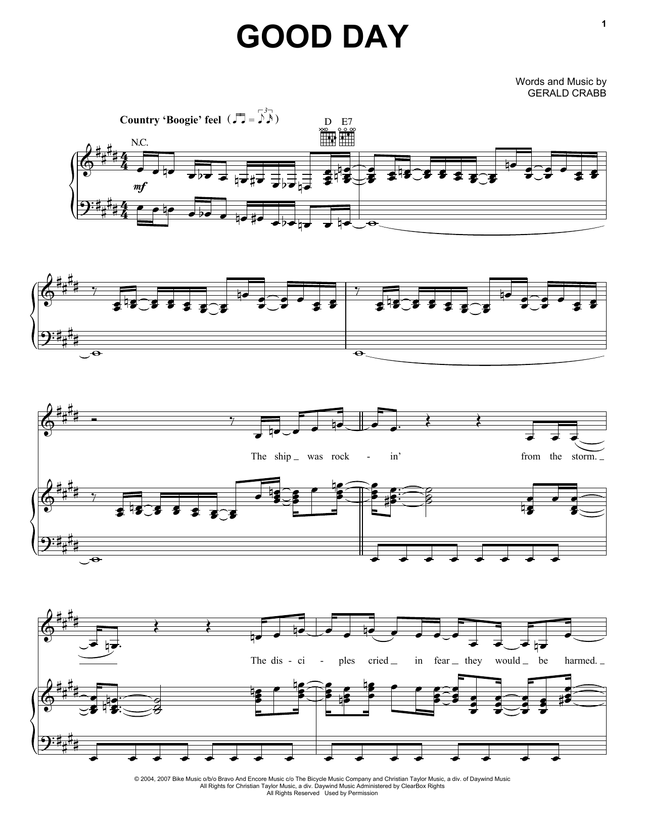 Download or print The Crabb Family Good Day sheet music, chords and digital score arranged for Piano, Vocal & Guitar Chords (Right-Hand Melody). This Christian score includes 7 page(s).