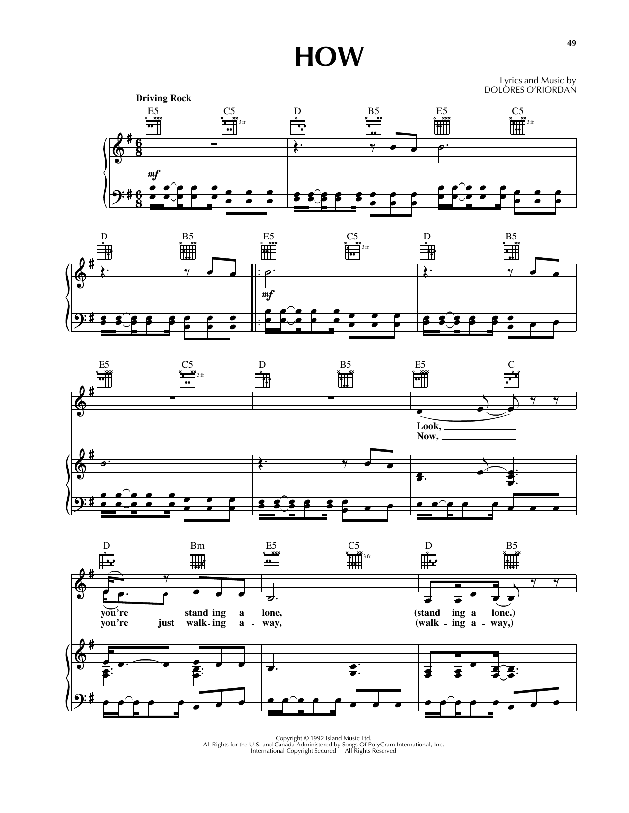 Download or print The Cranberries How sheet music, chords and digital score arranged for Piano, Vocal & Guitar Chords (Right-Hand Melody). This Alternative score includes 5 page(s).