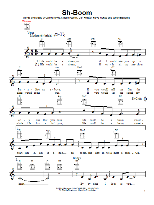Download or print The Crew-Cuts Sh-Boom sheet music, chords and digital score arranged for Lead Sheet / Fake Book. This Oldies score includes 3 page(s).