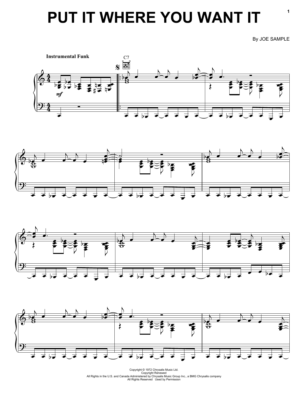 Download or print The Crusaders Put It Where You Want It sheet music, chords and digital score arranged for Piano, Vocal & Guitar Chords (Right-Hand Melody). This Pop score includes 3 page(s).