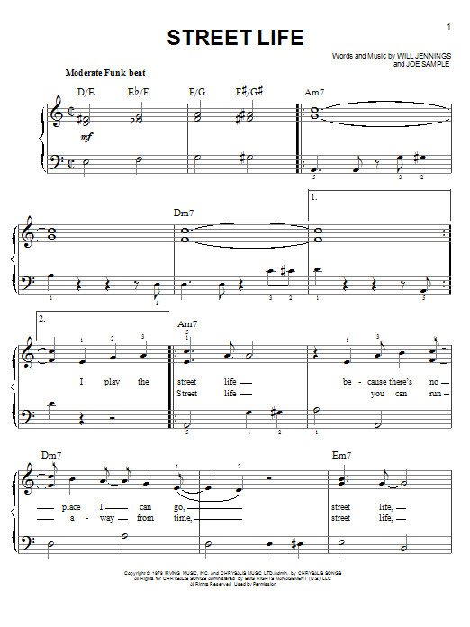Download or print The Crusaders Street Life sheet music, chords and digital score arranged for Piano, Vocal & Guitar Chords. This Disco score includes 4 page(s).