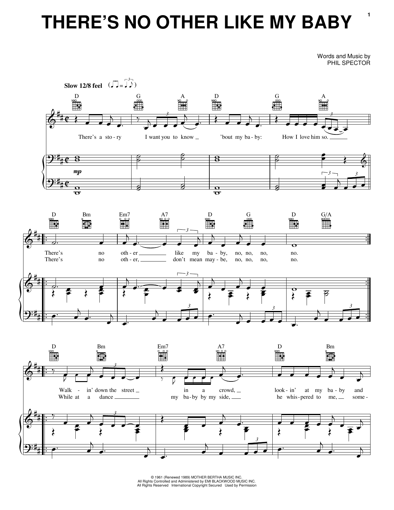 Download or print The Crystals There's No Other Like My Baby sheet music, chords and digital score arranged for Piano, Vocal & Guitar Chords (Right-Hand Melody). This Pop score includes 2 page(s).