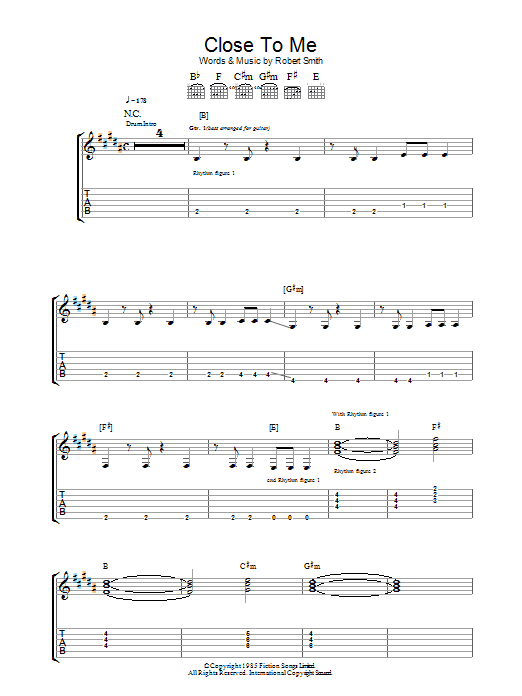 Download or print The Cure Close To Me sheet music, chords and digital score arranged for Piano, Vocal & Guitar Chords. This Pop score includes 6 page(s).