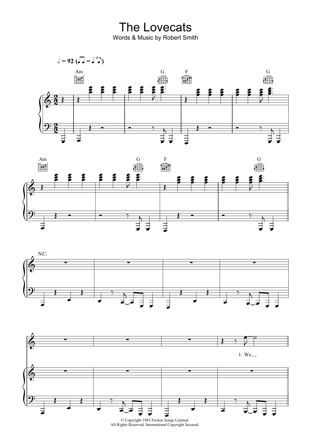 Download or print The Cure The Lovecats sheet music, chords and digital score arranged for Guitar Tab. This Pop score includes 10 page(s).