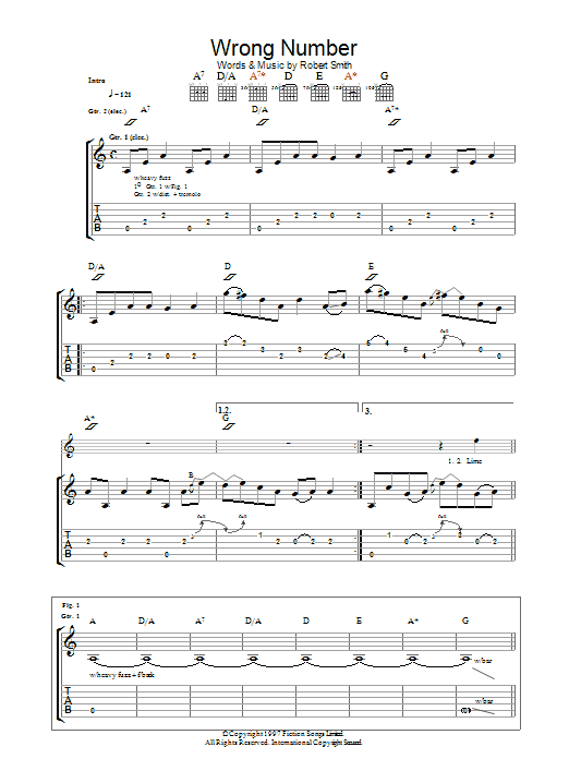 Download or print The Cure Wrong Number sheet music, chords and digital score arranged for Guitar Tab. This Pop score includes 10 page(s).