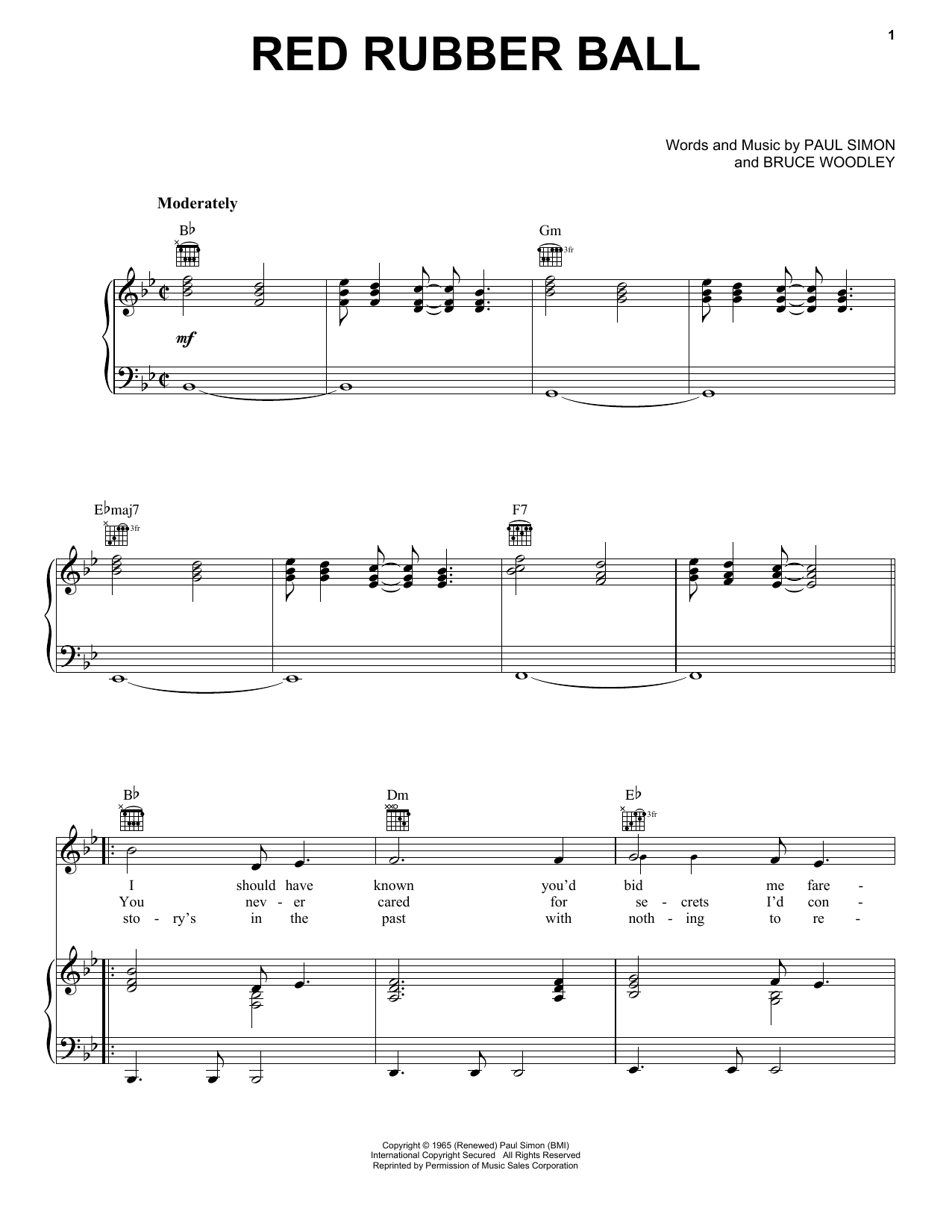 Download or print The Cyrkle Red Rubber Ball sheet music, chords and digital score arranged for Piano, Vocal & Guitar Chords (Right-Hand Melody). This Folk score includes 3 page(s).
