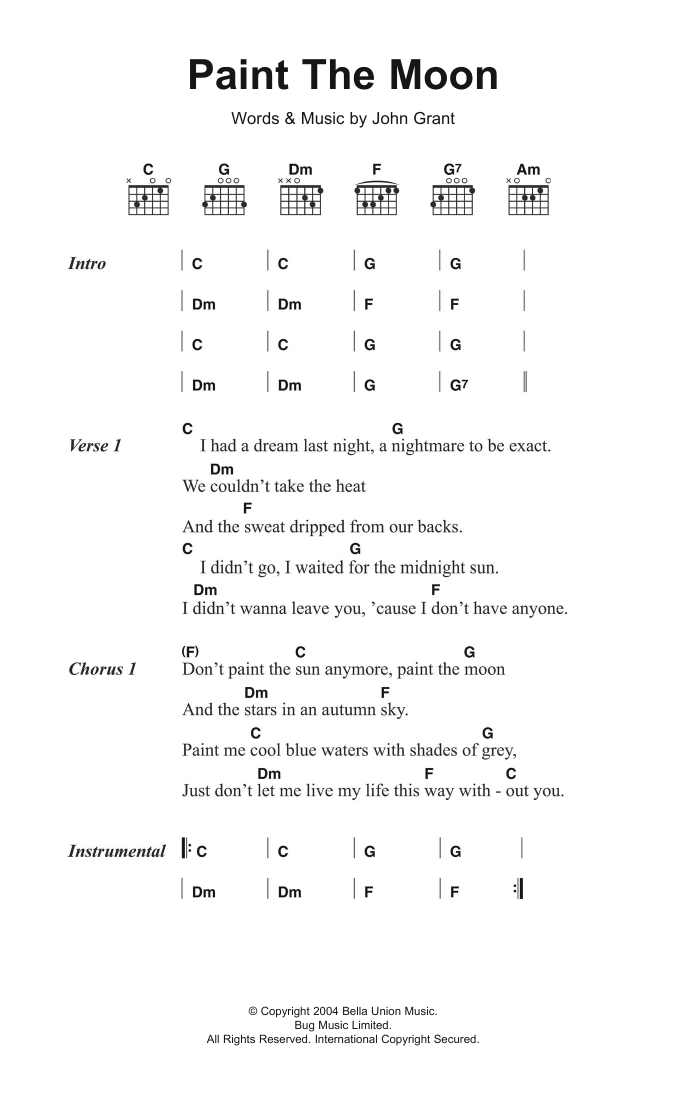 Download or print The Czars Paint The Moon sheet music, chords and digital score arranged for Guitar Chords/Lyrics. This Alternative score includes 2 page(s).