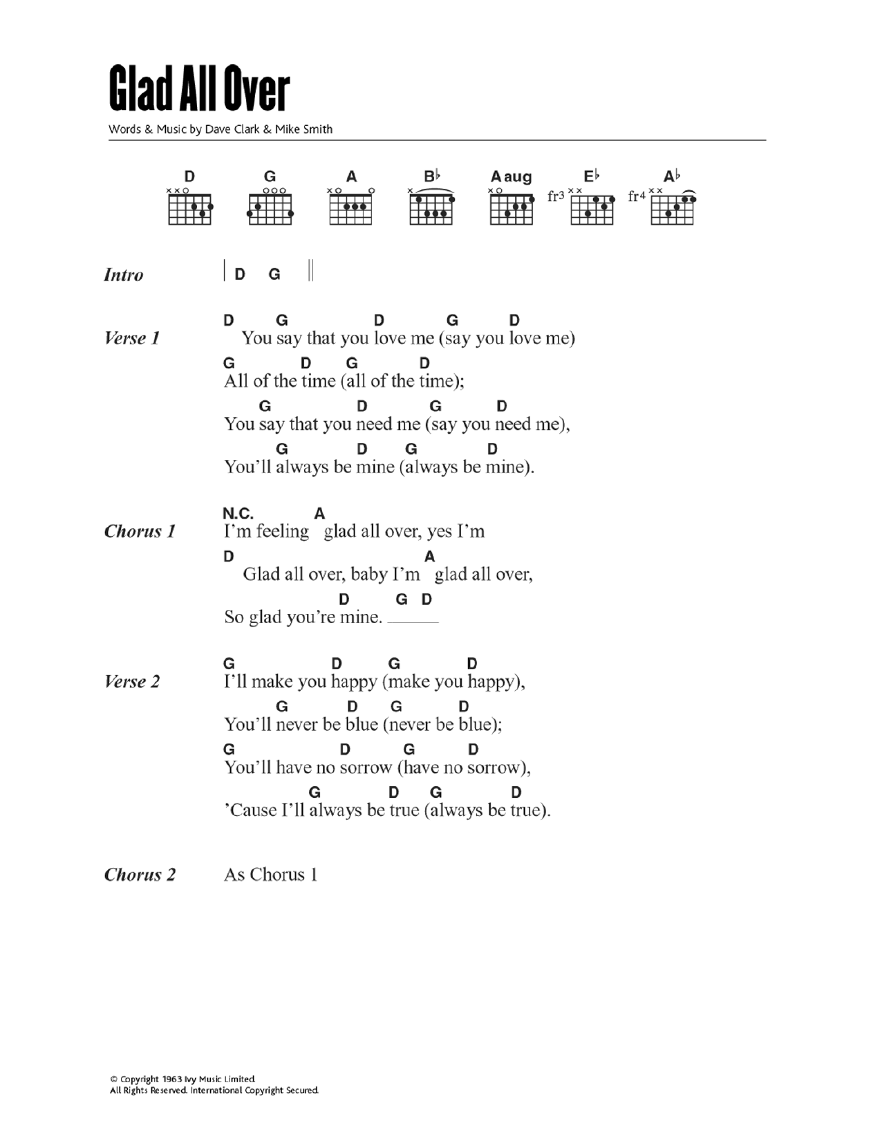 Download or print The Dave Clark Five Glad All Over sheet music, chords and digital score arranged for Trombone Duet. This Disney score includes 2 page(s).