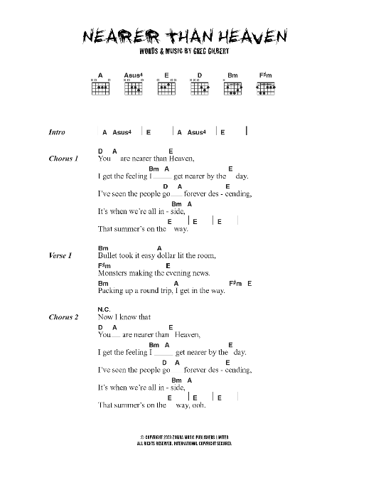 Download or print The Delays Nearer Than Heaven sheet music, chords and digital score arranged for Guitar Chords/Lyrics. This Rock score includes 2 page(s).