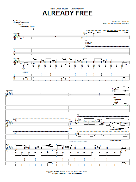 Download or print The Derek Trucks Band Already Free sheet music, chords and digital score arranged for Guitar Tab. This Pop score includes 12 page(s).