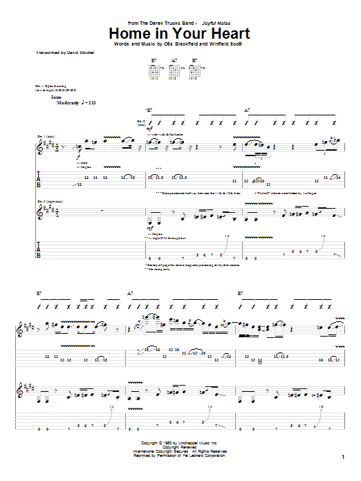 Download or print The Derek Trucks Band Home In Your Heart sheet music, chords and digital score arranged for Guitar Tab. This Pop score includes 10 page(s).