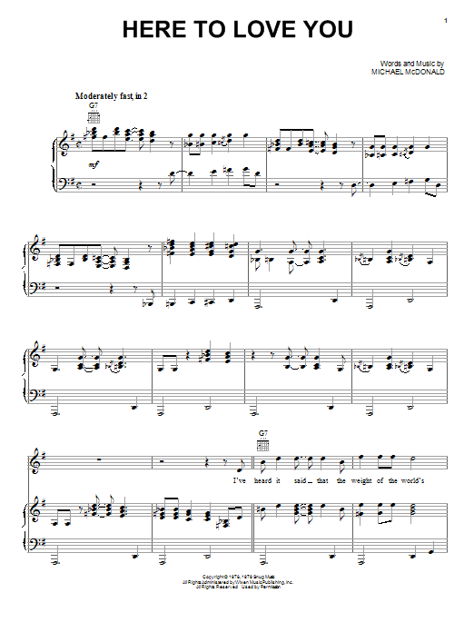 Download or print The Doobie Brothers Here To Love You sheet music, chords and digital score arranged for Piano, Vocal & Guitar Chords (Right-Hand Melody). This Pop score includes 7 page(s).