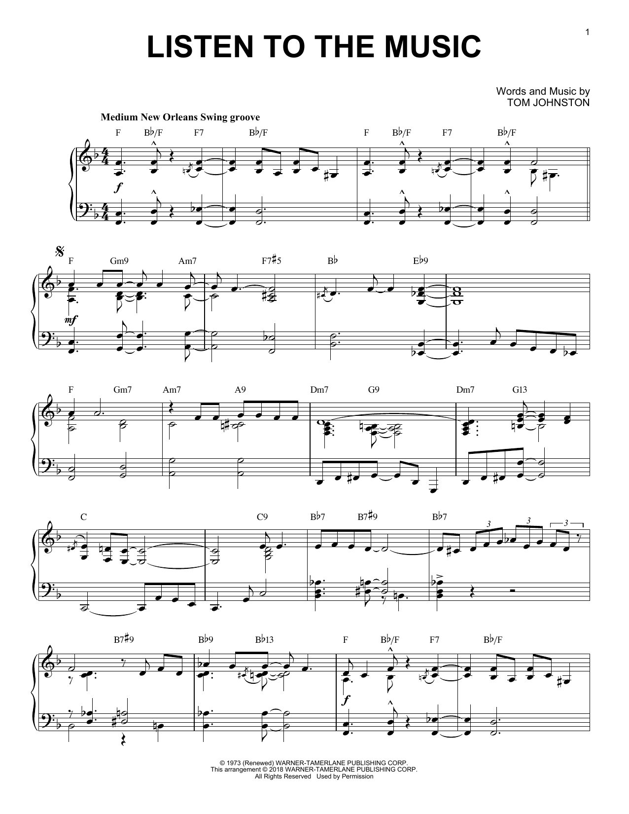Download or print The Doobie Brothers Listen To The Music [Jazz version] sheet music, chords and digital score arranged for Piano Solo. This Rock score includes 4 page(s).