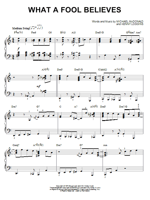 Download or print The Doobie Brothers What A Fool Believes [Jazz version] (arr. Brent Edstrom) sheet music, chords and digital score arranged for Piano Solo. This Pop score includes 4 page(s).