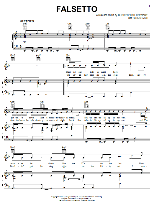 Download or print The Dream Falsetto sheet music, chords and digital score arranged for Piano, Vocal & Guitar Chords (Right-Hand Melody). This Hip-Hop score includes 7 page(s).