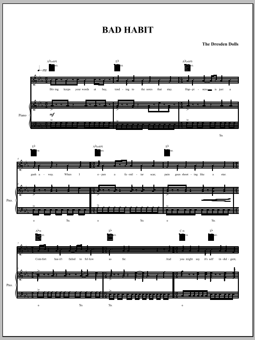 Download or print The Dresden Dolls Bad Habit sheet music, chords and digital score arranged for Piano, Vocal & Guitar Chords (Right-Hand Melody). This Alternative score includes 8 page(s).