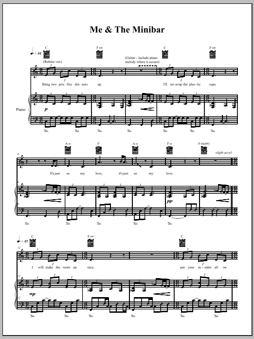 Download or print The Dresden Dolls Me & The Minibar sheet music, chords and digital score arranged for Piano, Vocal & Guitar Chords (Right-Hand Melody). This Alternative score includes 6 page(s).
